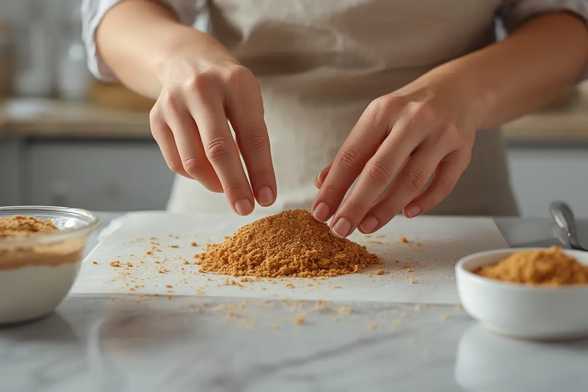 Combine Biscoff crumbs, melted butter, sugar, and eggs to form a batter.