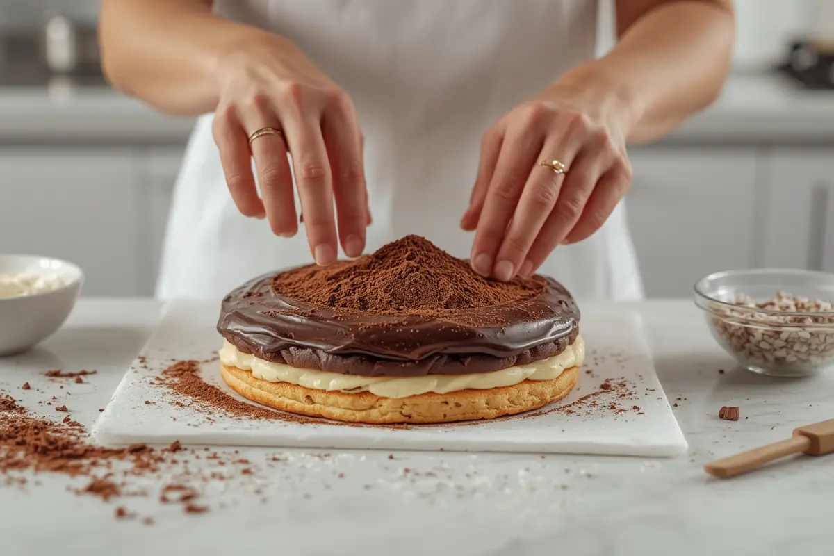 3. Hot Glaze Application: Allowing the chocolate glaze to cool slightly prevents it from melting the top layer of filling.