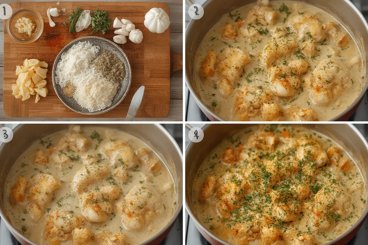 Learn how to make a delicious and creamy garlic chicken dish.