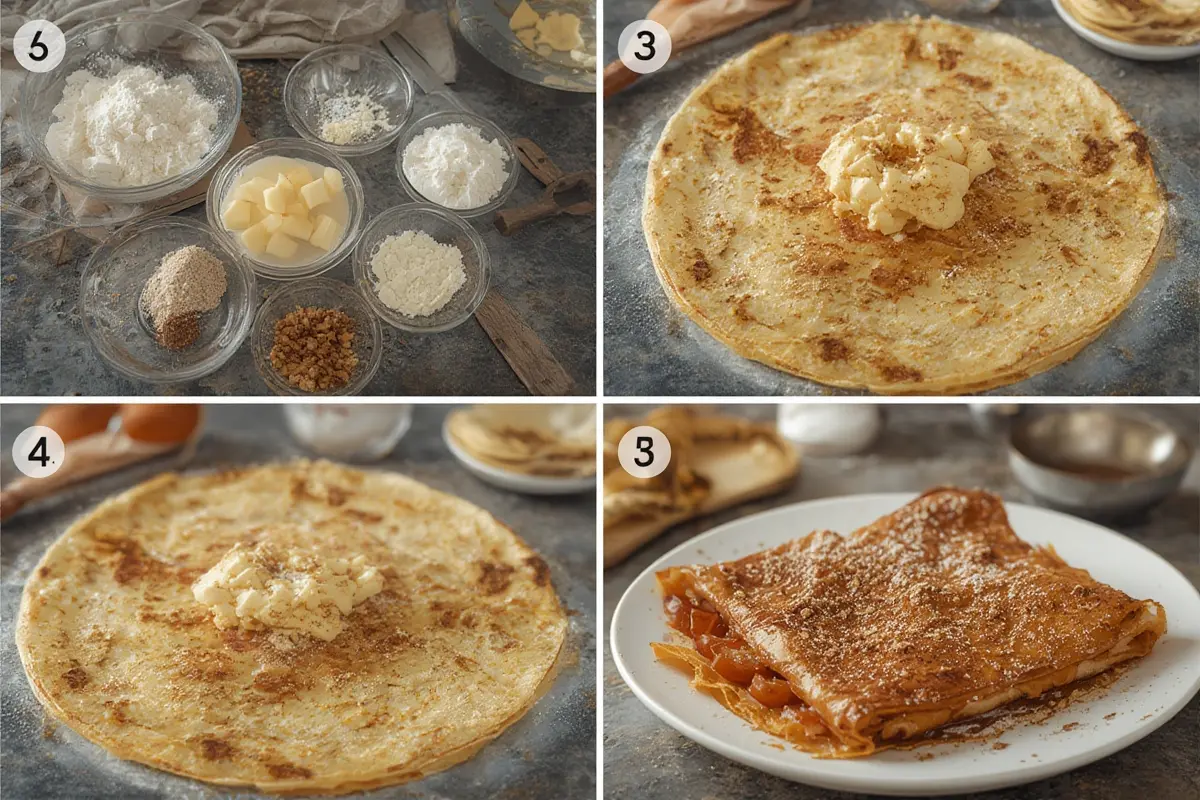 • Cook for 1-2 minutes per side, or until golden brown, then transfer the cooked crepe to a plate.