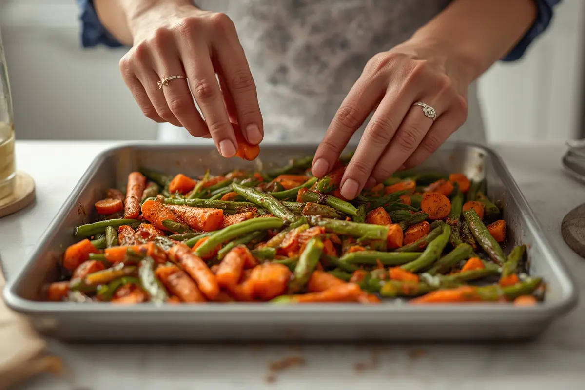 For harder vegetables like carrots, start roasting 10 minutes before adding quicker-cooking items like green beans. This ensures all vegetables reach perfect doneness simultaneously.