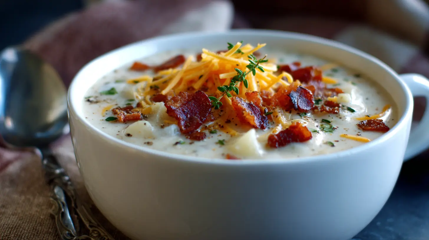 This potato soup offers several nutritional benefits despite its creamy indulgence. Potatoes provide a good source of vitamin C, potassium, and vitamin B6. When made with low-sodium broth and light dairy alternatives, you can reduce the sodium and fat content significantly. The addition of onions and garlic provides antioxidants and immune-boosting properties, making this a comforting meal with health benefits during cold and flu season.