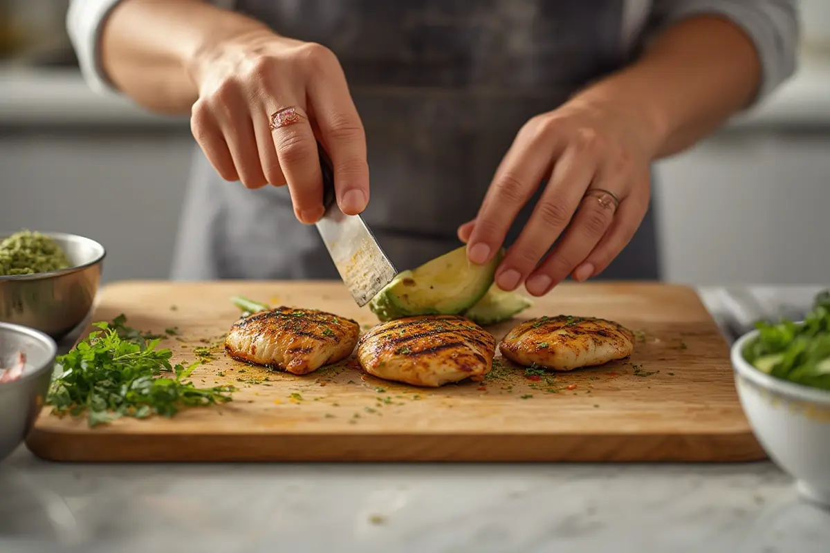 5. Prepare the avocado topping: While the chicken cooks, combine diced avocados, red onion, jalapeño, cilantro, lime juice, and salt in a bowl. Gently mix to maintain avocado chunks – this fresh topping is what distinguishes a Cilantro Lime Avocado Chicken from other grilled chicken dishes.