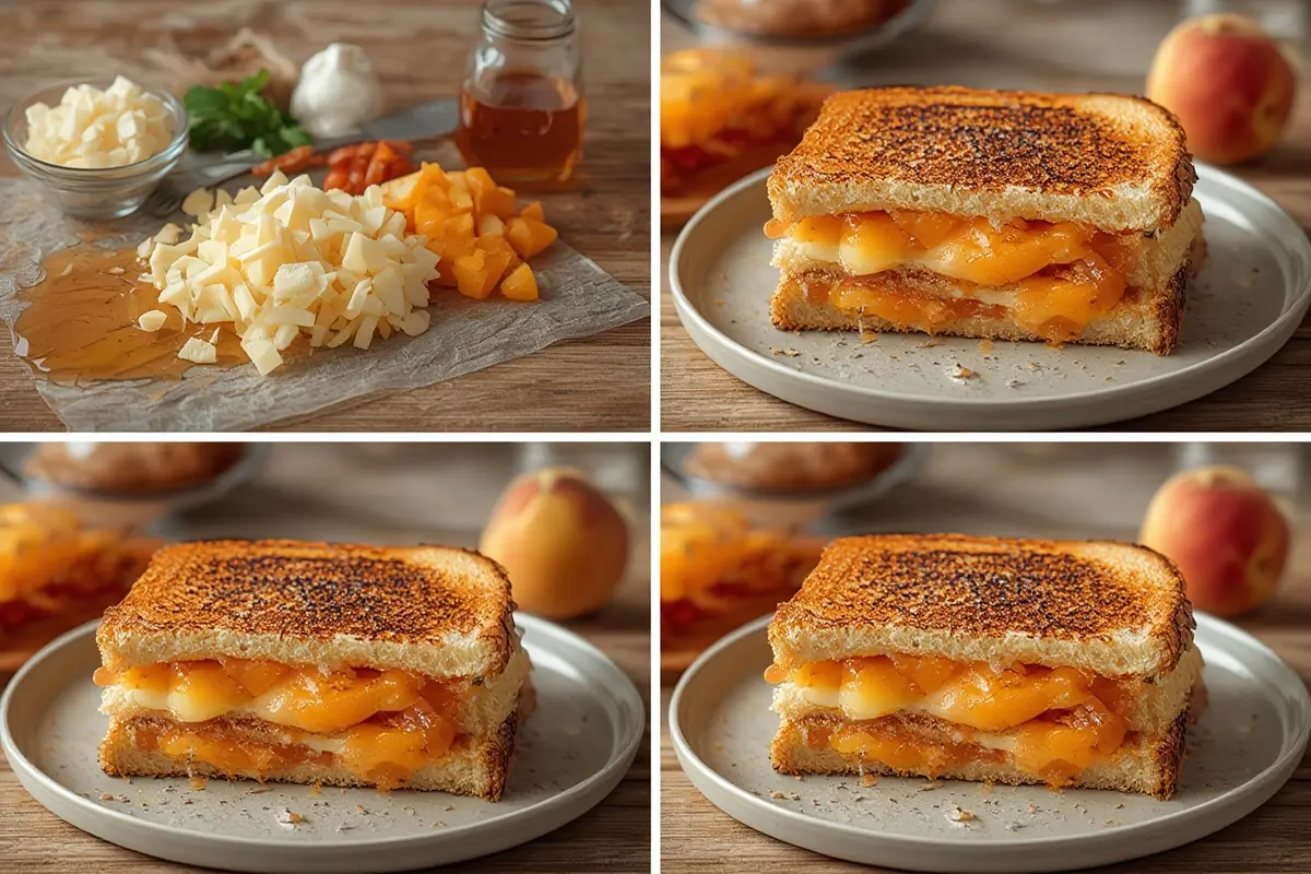 The Grilled Cheese with Honey Peaches and White Cheddar represents comfort food elevated to new heights, combining the familiar warmth of melted cheese with the unexpected sweetness of honey-kissed peaches. This sandwich proves that simple ingredients can create extraordinary flavors when thoughtfully combined. Whether serving for a casual lunch or impressive appetizer, the Peach cheddar grilled cheese delivers a memorable culinary experience that’s sure to become a new favorite in your recipe collection.