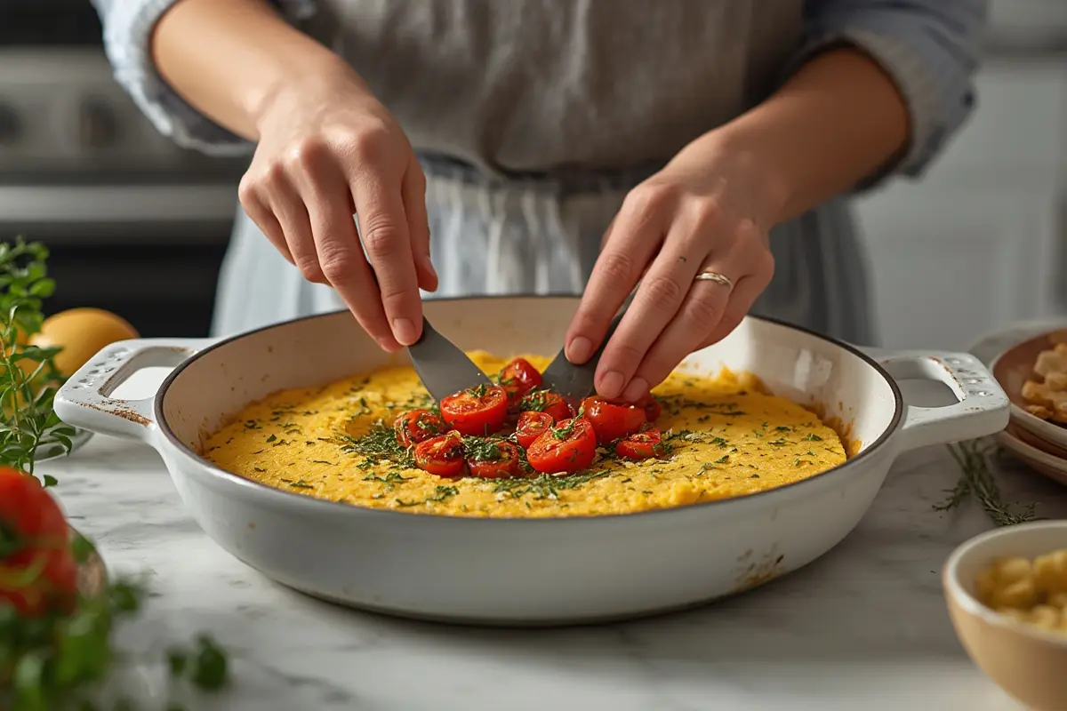 The Herbed Polenta Bake with Roasted Tomatoes is a versatile dish that showcases how simple ingredients can transform into something extraordinary. Whether you’re looking for a hearty vegetarian main course or a memorable side dish, this recipe delivers on both flavor and presentation. The contrast between the creamy, herb-infused polenta and the sweet-tart burst of the Roasted Tomato Recipes creates a balanced bite that will leave your guests asking for the recipe.