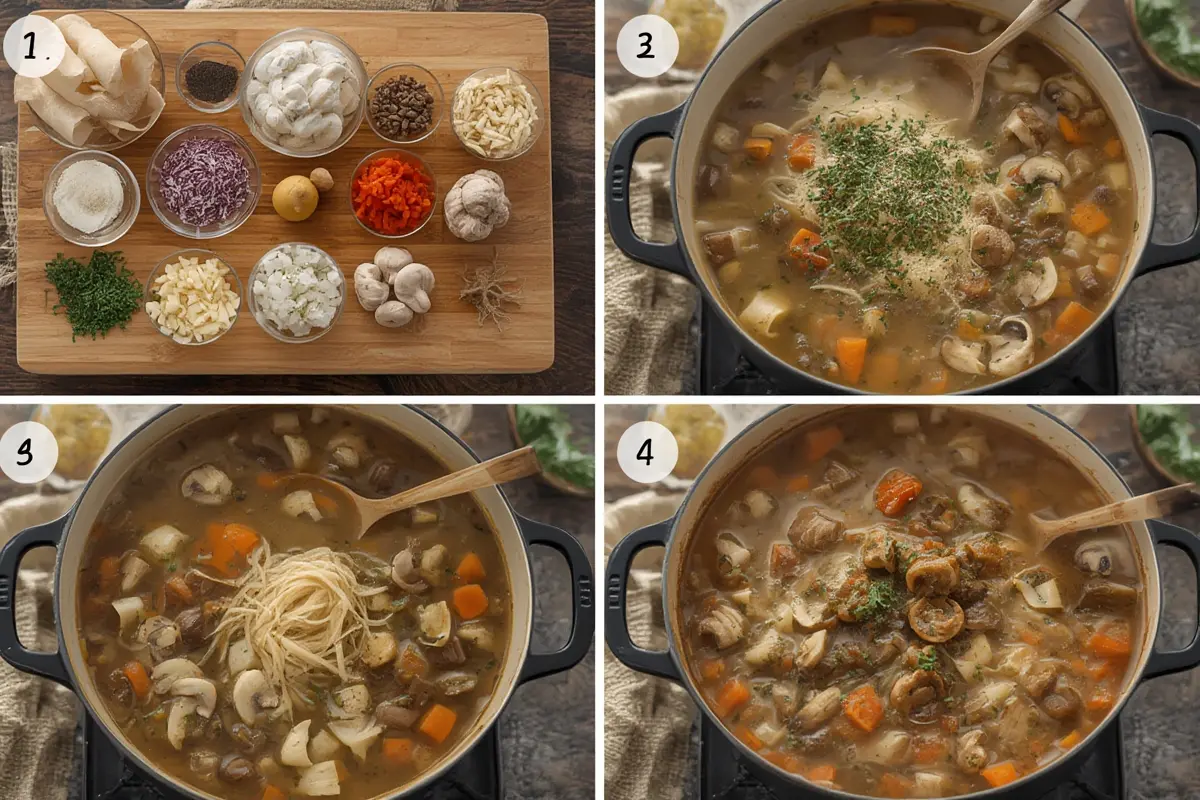 2. Sauté the base: Heat butter and olive oil in your pot over medium heat. Add onions and cook until translucent (5-7 minutes). Add mushrooms and continue cooking until they release their moisture and begin to brown (8-10 minutes).