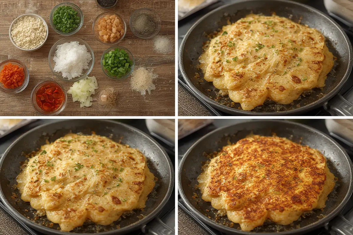 7. Cook Until Golden: Cook for 3-4 minutes until the bottom is golden brown and crispy. The edges should look set before attempting to flip the Pajeon recipe.