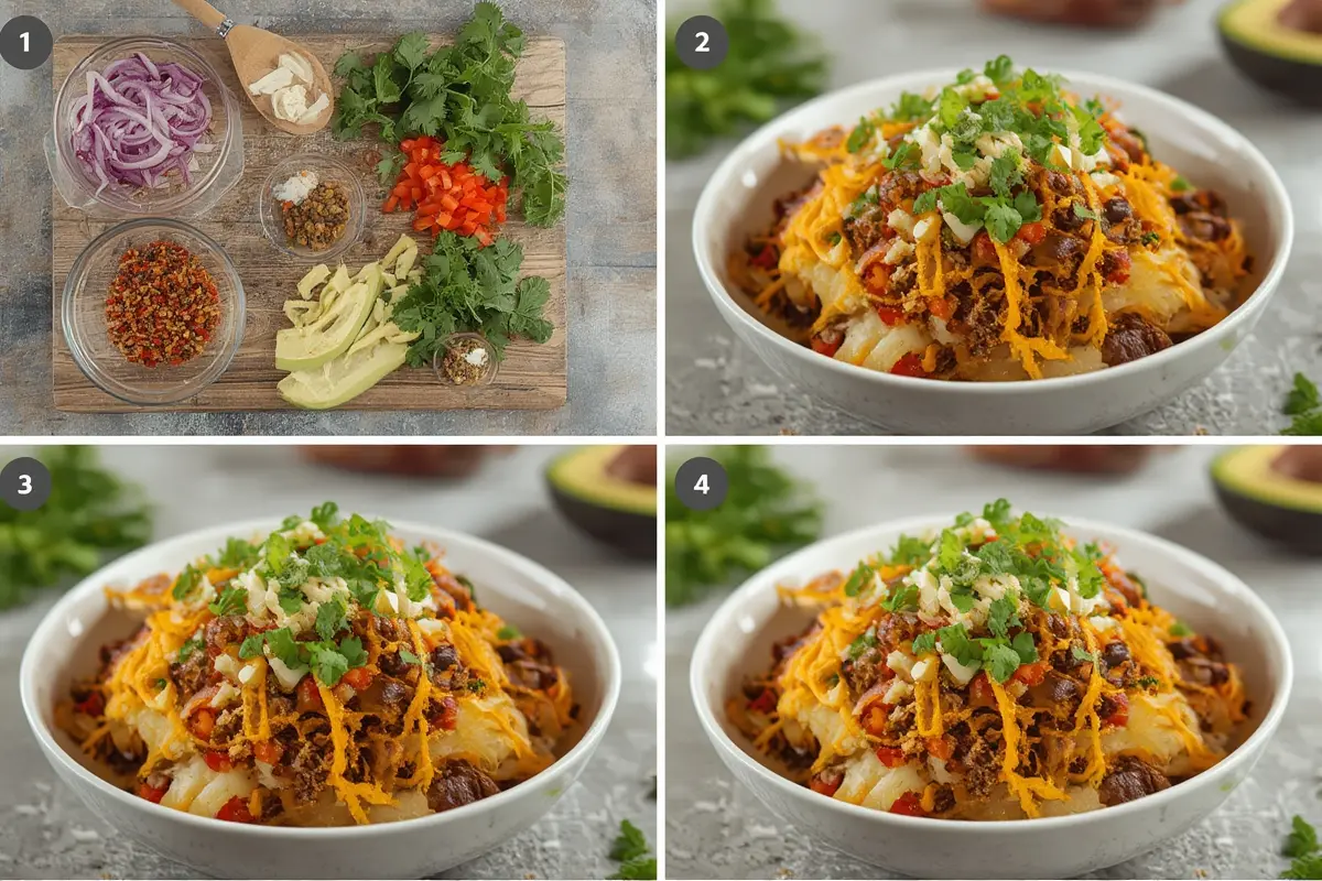 The Loaded Potato Taco Bowl offers endless possibilities for customization while bringing together beloved flavors in one satisfying dish. Whether you’re feeding a hungry family or meal prepping for the week, this versatile recipe delivers on flavor, nutrition, and convenience. The Cheesy Potato Taco Bowl combines comfort food with fresh ingredients for a balanced meal that’s sure to become a regular in your recipe rotation. Give it a try and discover your favorite variation of this crowd-pleasing dish!