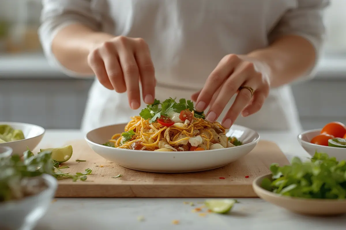 5. Prepare toppings: Chop and arrange all toppings in separate bowls for a build-your-own Cheesy Potato Taco Bowl experience.