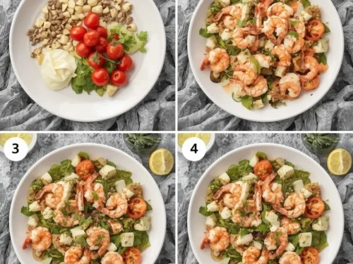 • Toss gently to combine all ingredients, ensuring the shrimp and vegetables are well coated with the dressing.