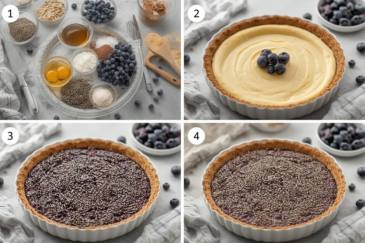 - Blend blueberries and chia seeds until smooth, then pour the mixture over the prepared crust.