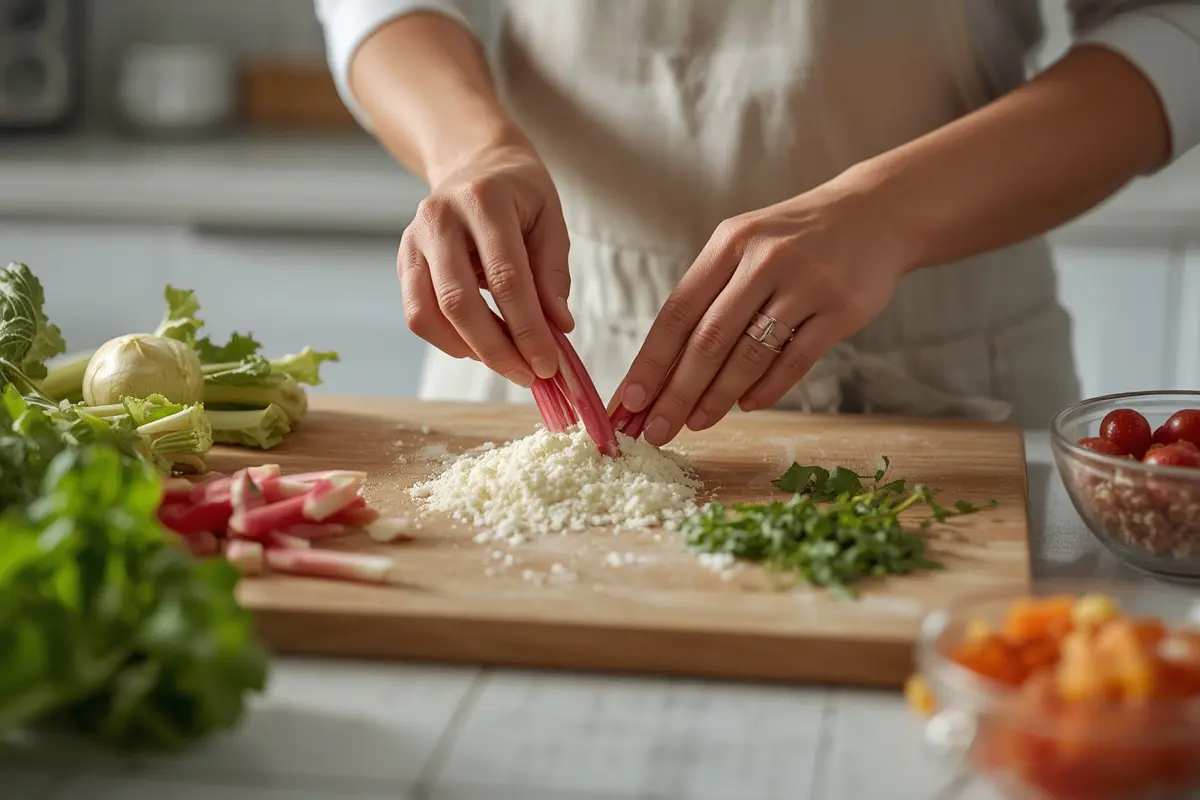 Ripe rhubarb stalks should be firm, crisp, and have a vibrant red color. Avoid stalks that are floppy or extremely green.
