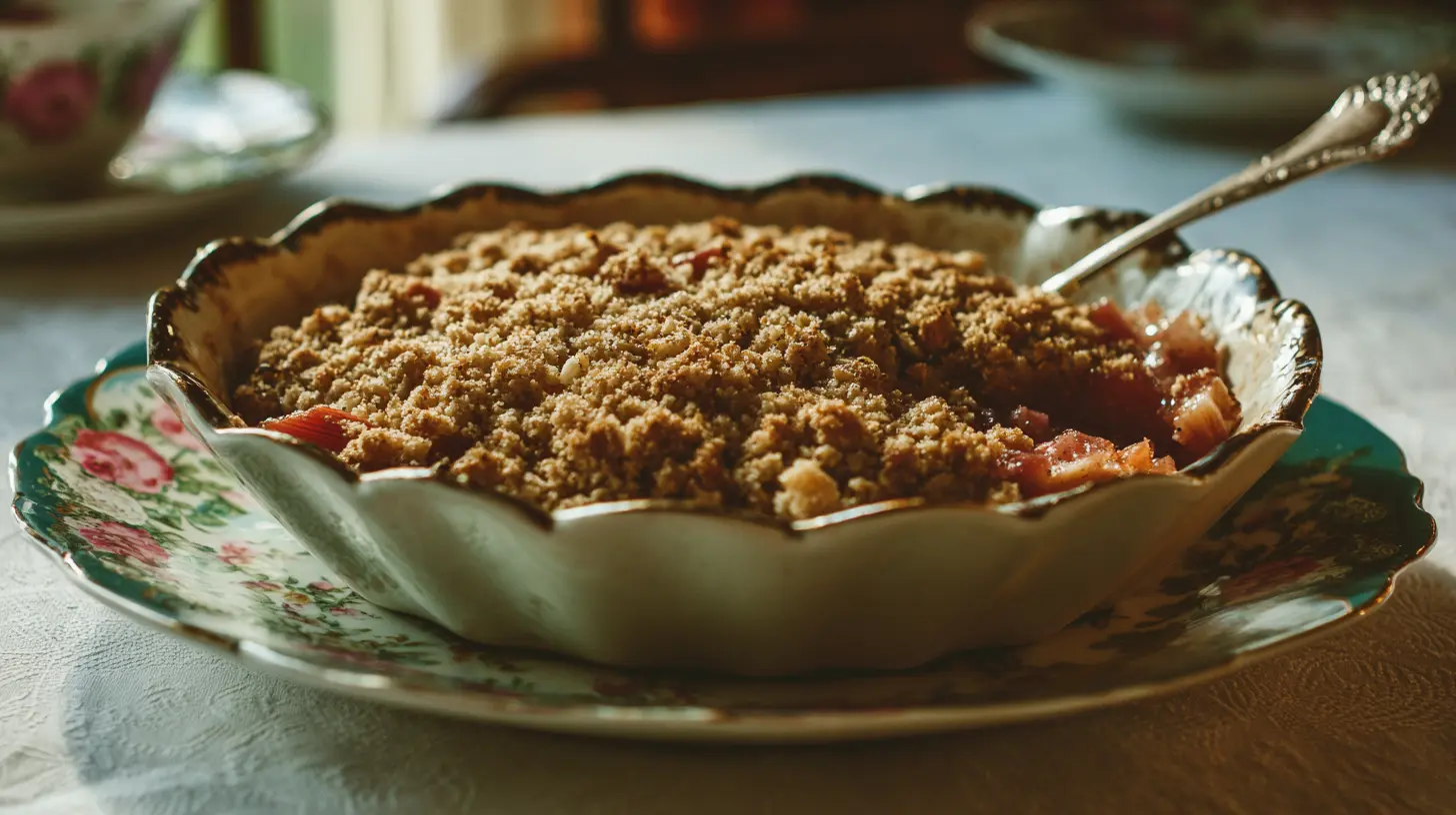 • Bake at 375°F (190°C) for 35-40 minutes, or until the rhubarb is tender and the topping is golden brown.