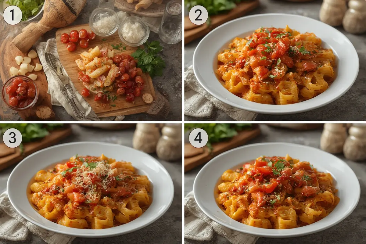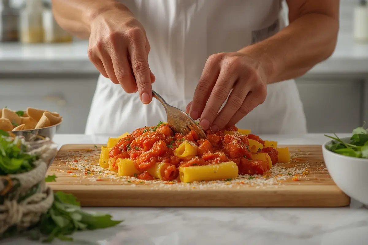 1. Prepare your ingredients: Slice garlic, measure red pepper flakes, and have tomatoes ready to go. The classic Rigatoni Arrabbiata requires minimal ingredients, so quality matters.