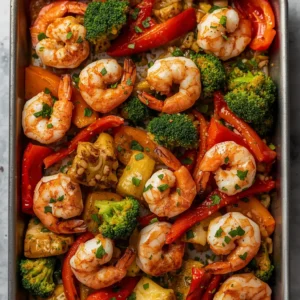 This classic sheet pan recipe features succulent shrimp and vibrant vegetables, all roasted to perfection with simple seasonings for a quick and healthy meal.
