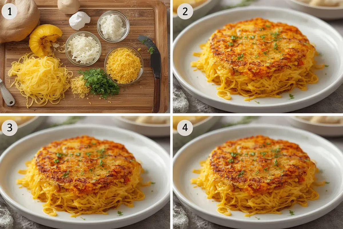 2. Cool and shred: Allow the squash to cool completely. Use a fork to scrape the flesh into spaghetti-like strands.