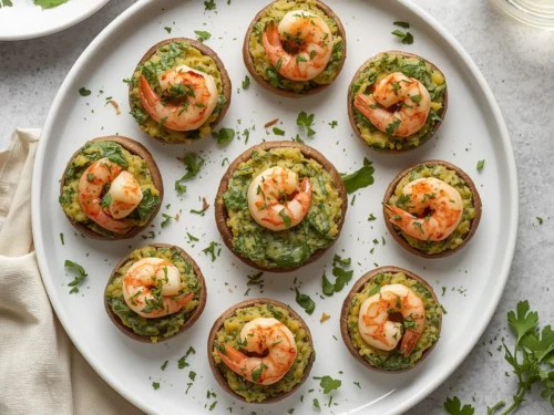 These classic stuffed mushrooms are filled with a delicious mixture of spinach, shrimp, and cheese, baked until golden and bubbling. They make a perfect appetizer or a light meal.