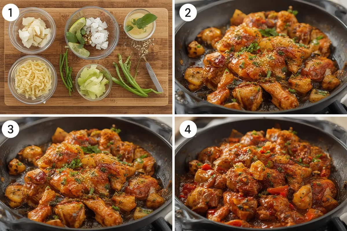 - Add the marinated chicken and cook until browned on all sides and cooked through.
