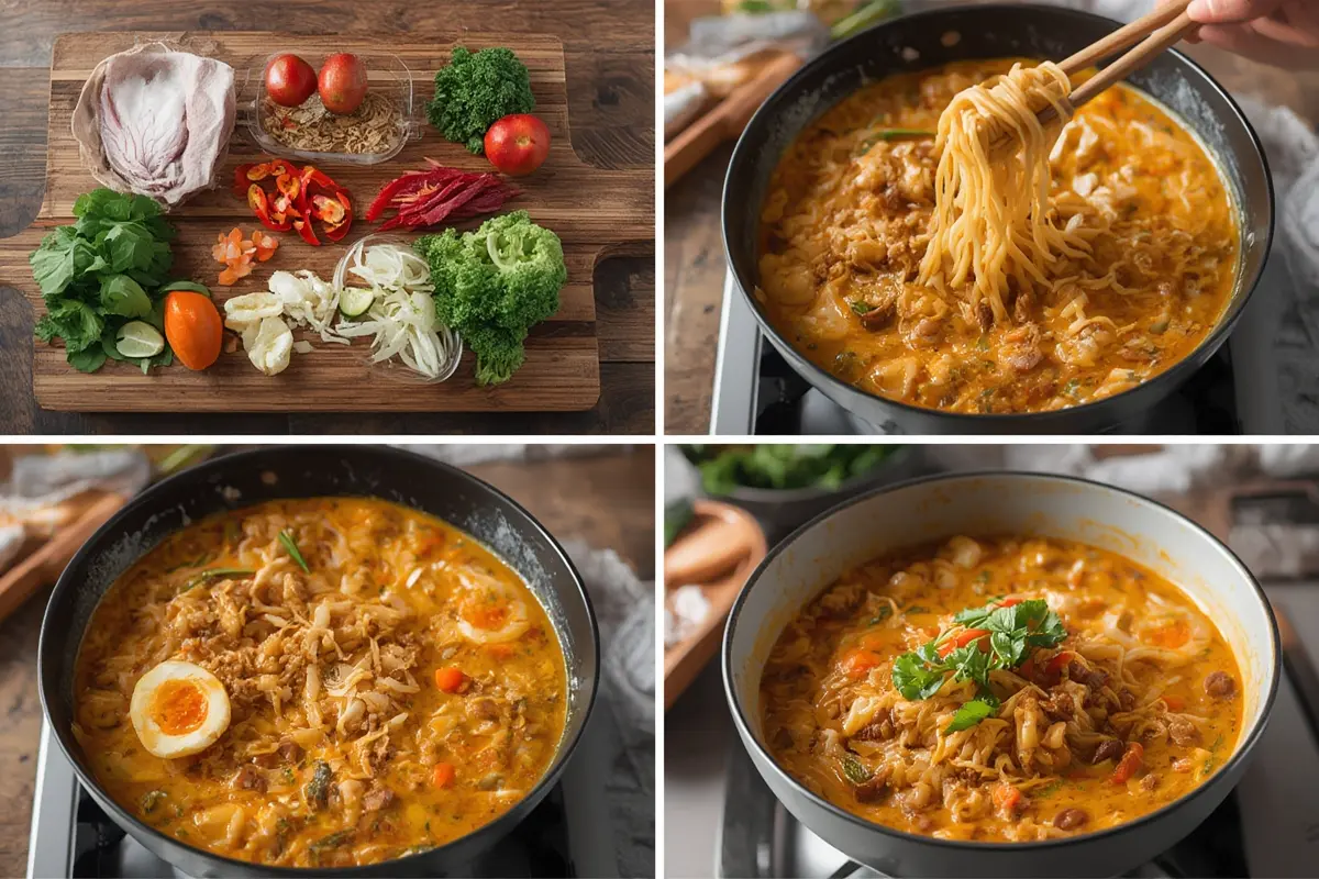 Store broth and noodles separately in airtight containers in the refrigerator for up to 3 days. Freeze the broth (without coconut milk) for up to 3 months. When reheating, warm the broth gently on the stovetop and cook fresh noodles, as stored noodles tend to become soggy. For meal prep, prepare the broth and toppings in advance, then cook fresh noodles when ready to serve.
